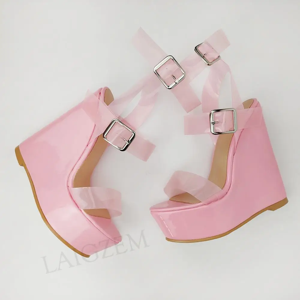 BERZIMERМодные женские босоножки на танкетке; Туфли-лодочки с ремеш...