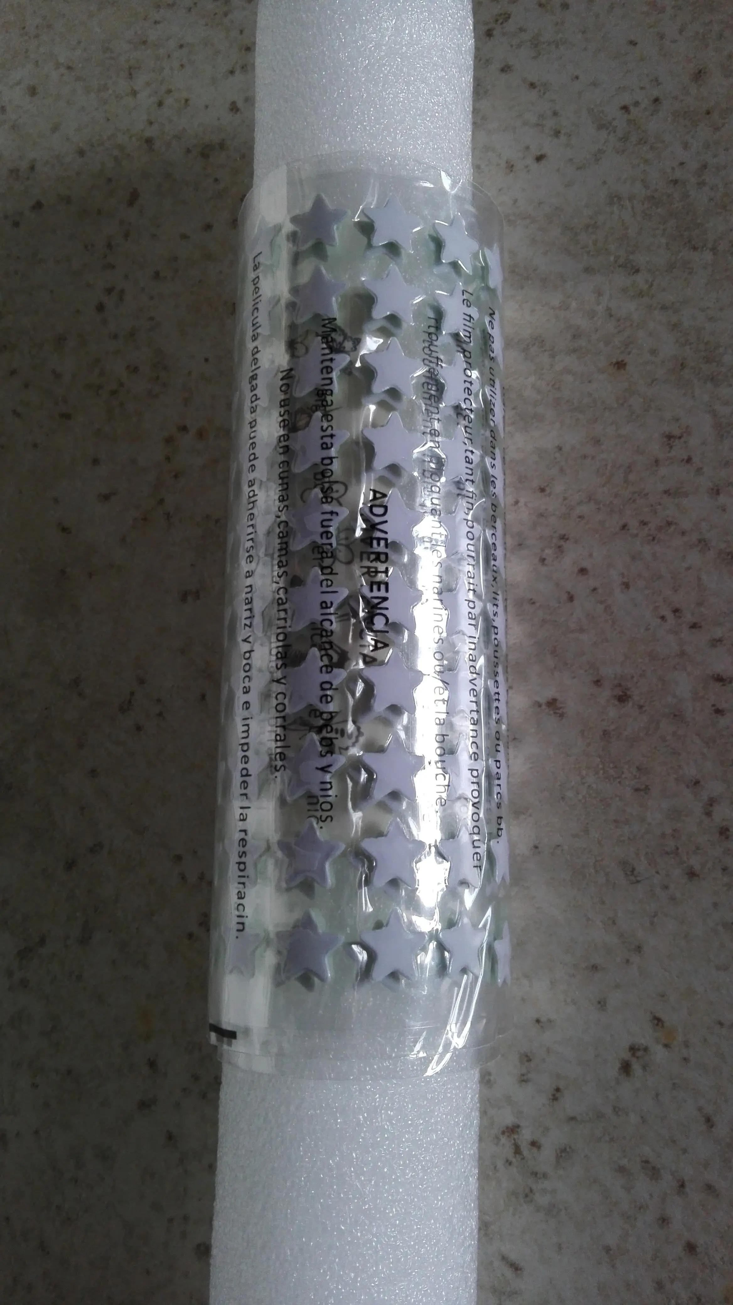 Посылка пришла быстро.Но звездочки пришлось выбросить,так как очень сильный запах химии.Да и не светились.То есть слегка и буквально пару минут.В общем товаром я не довольна.Претензий к продавцу не имею,цена то копеечная.Ранее заказывала тоже звезды флуоресцентные,те были обалденные.