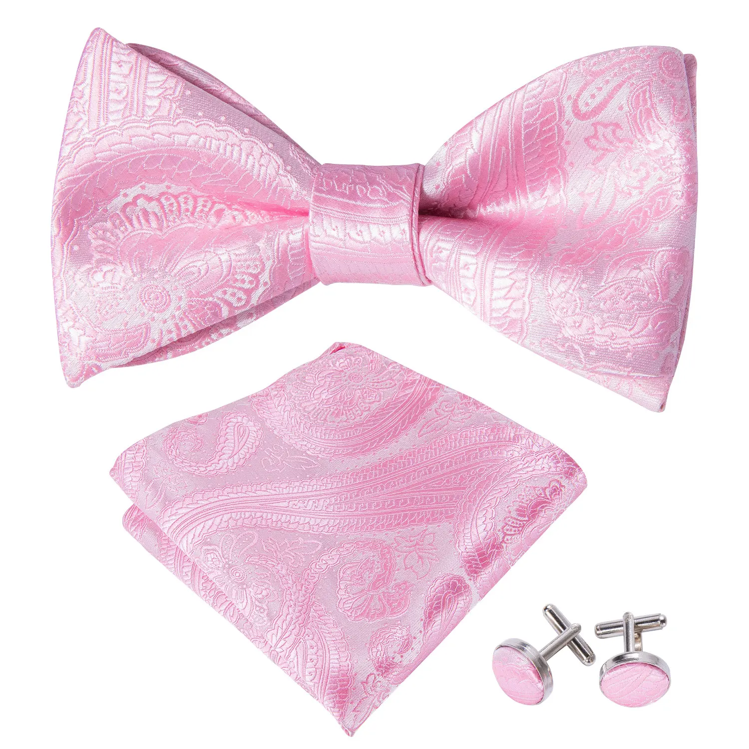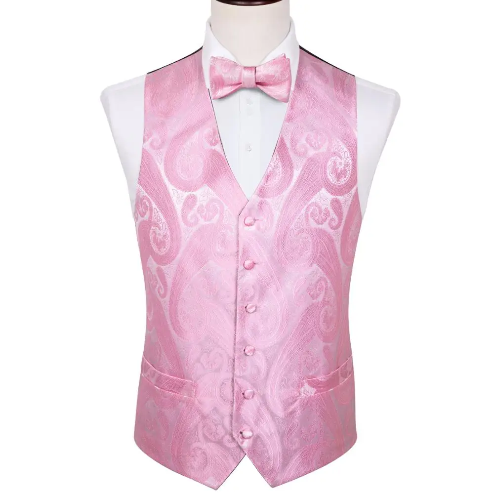 4 шт. Шелковый розовый мужской жилет платок Пейсли Цветочный жаккардовый жилет набор с бантом Классический формальный ML-2010 Добби