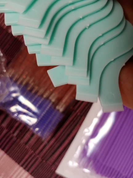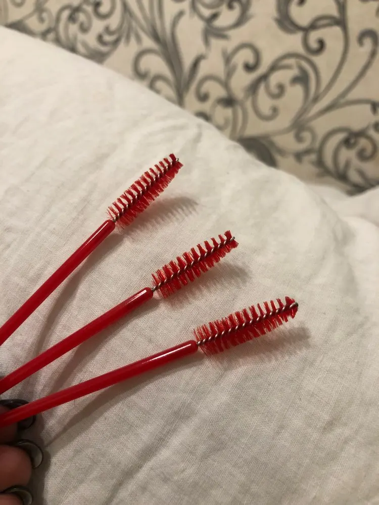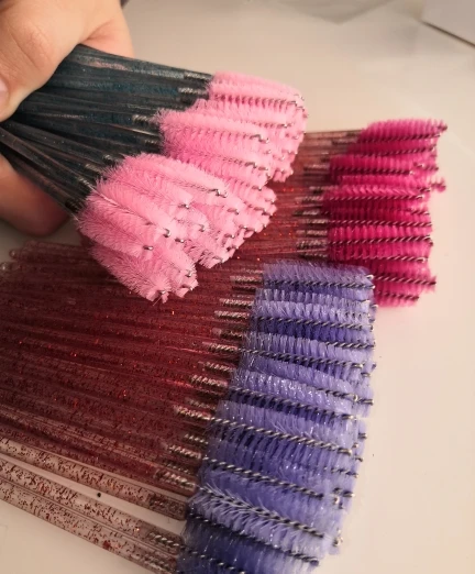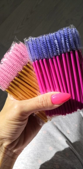 хорошие щёточки средней жёсткости,рекомендую,хорошо прочесывают объёмные нарощенные реснички,идеально подойдет для расчёсывания бровок