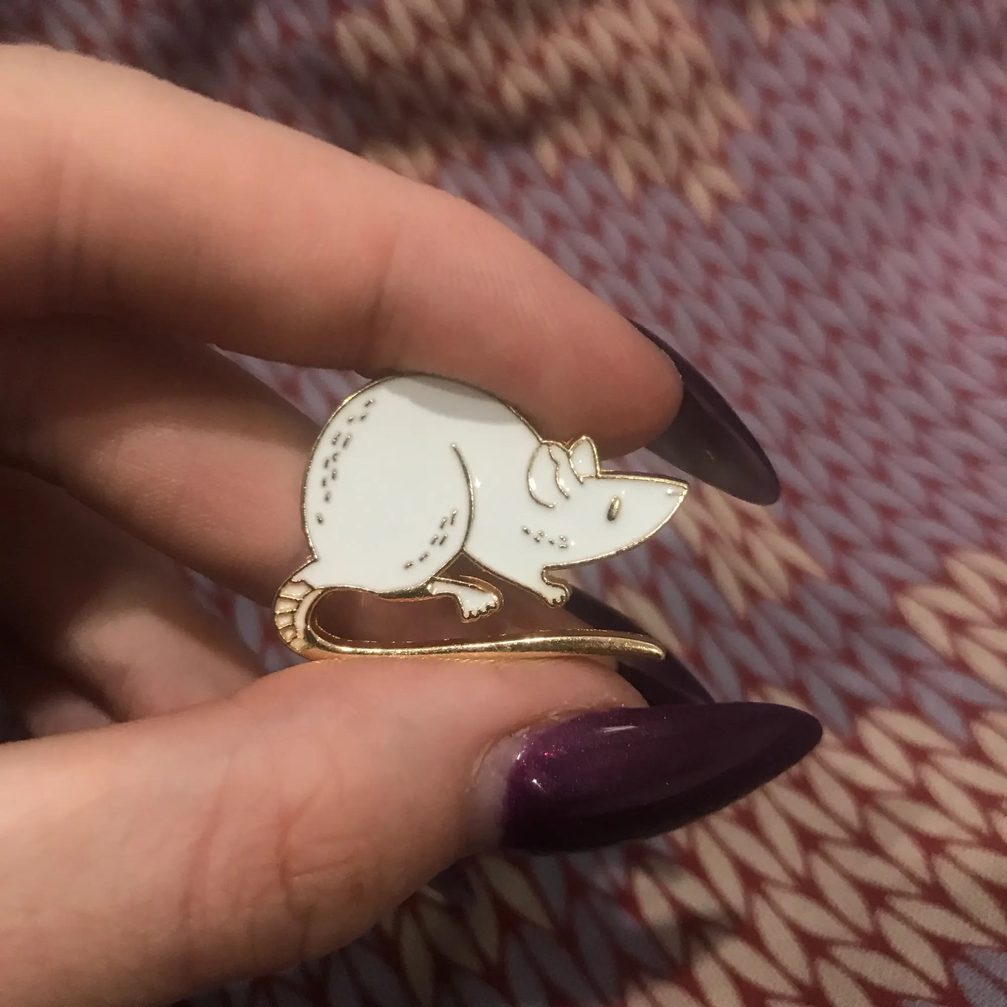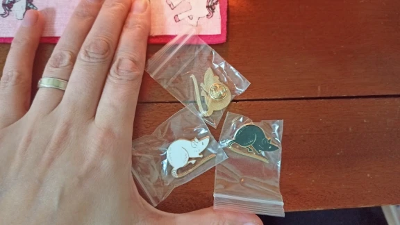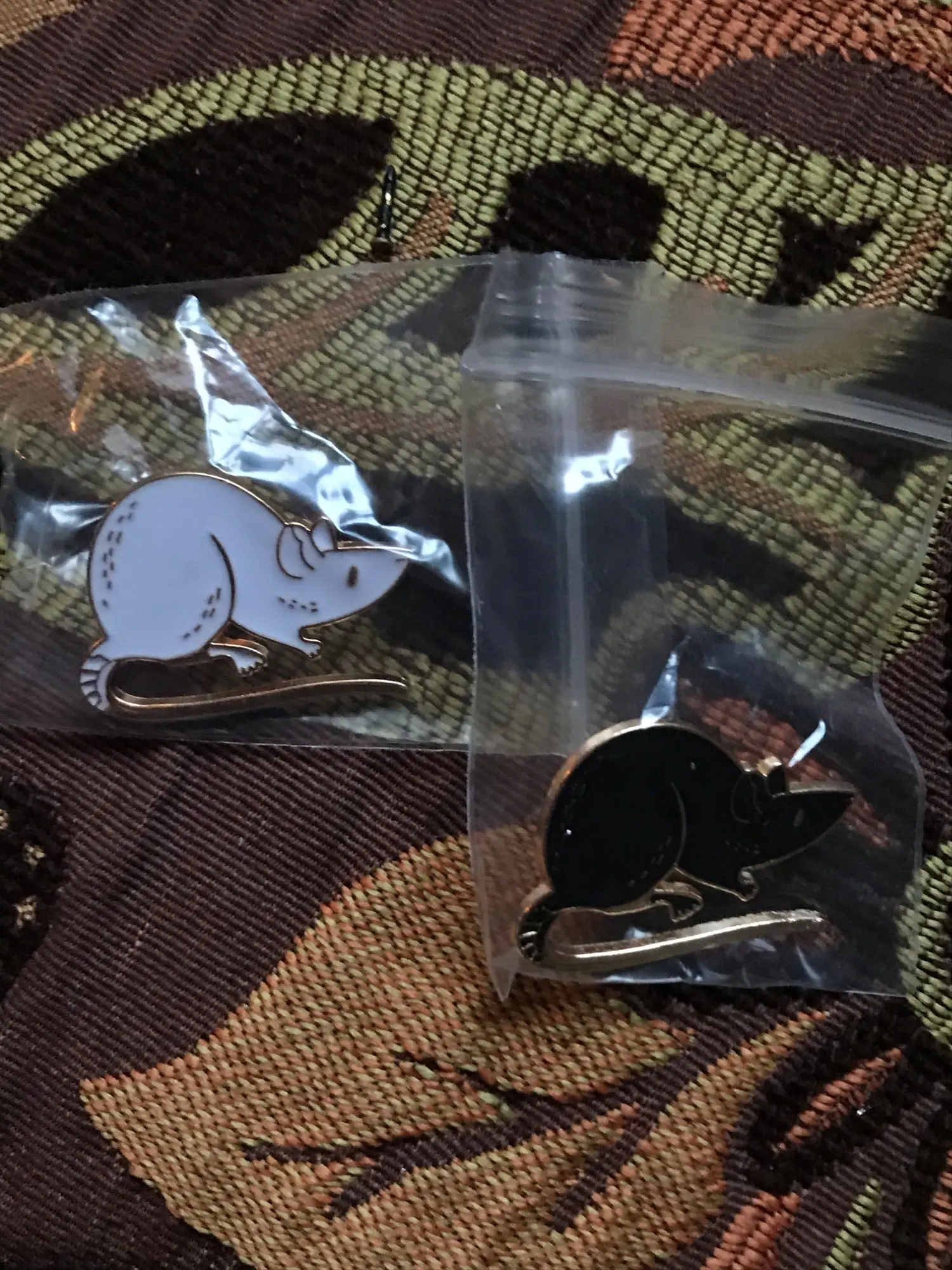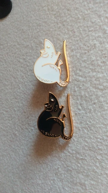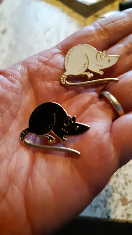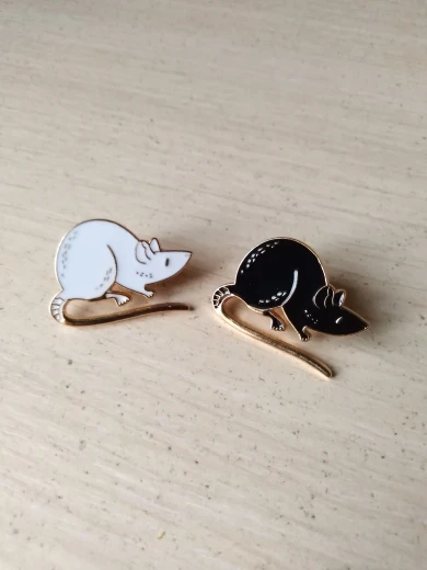 Значки чудові! Йшли приблизно місяць, прийшли в конвертику обклеєному зсередини пупиркою і кожен у своєму зіп-пакетику. Пацючки гарні, якісні, і за свою ціну(брала двох разом приблизно за гривень 30) то просто супер. Маленькі правда, але то не біда, я їх приблизно такого розміру і чекала. Мають застібки "метелики", тримаються міцно(навмисно їх тягнула і смикала коли причепила щоб перевірити чи не злетять — не злетіли) В цілому залишилась задоволена і товар раджу, за такі копійки то просто золоті пацючки! Особливо якщо пацюка хочеться, а живого завести не можеш