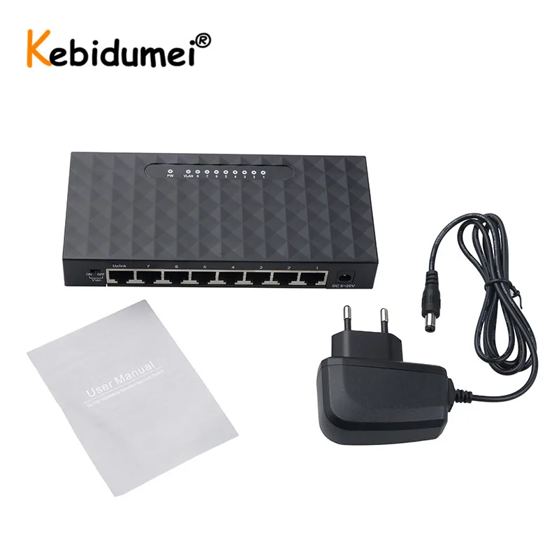 Сетевой коммутатор с 8 портами Gigabit, 100 Мбитс, сетевой коммутатор Gigabit Ethernet RJ45 Lan Hub, высокопроизводительный Ethernet, штепсельная вилка европейского стандарта