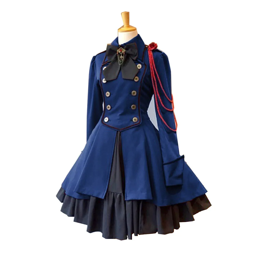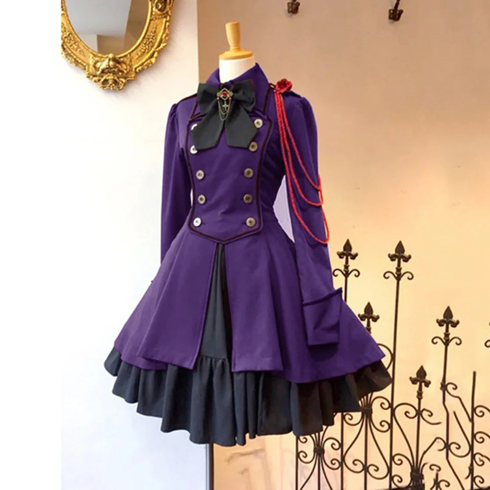 Средневековое готическое черное пальто Лолиты на шнуровке с бантом и цепочкой, приталенное классическое платье лолиты с длинными рукавами и оборками, одежда для косплея до колен