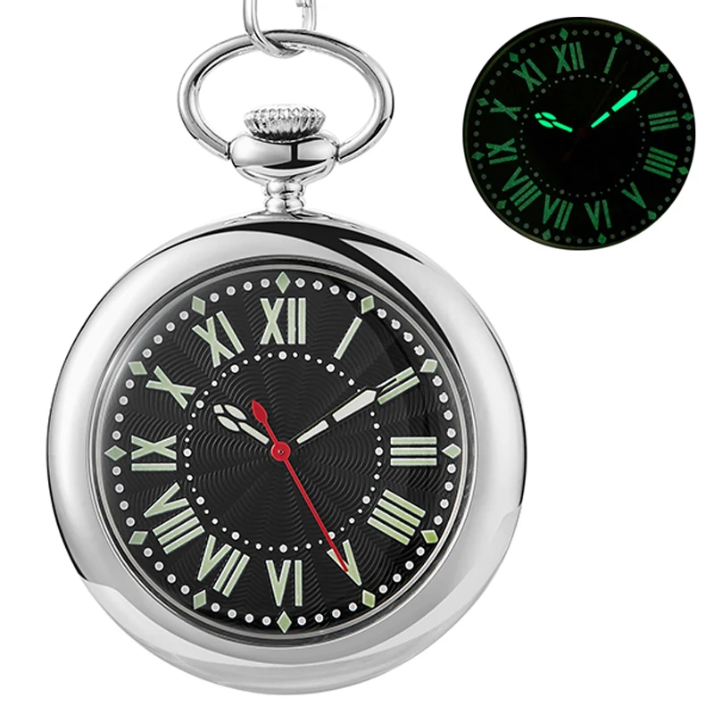 Светящиеся стрелки кварцевые карманные часы с подвеской брелок цепочка Reloj Для мужчин и женщин золотистый Серебристый Черный Чехол Мужской Римский стиль часы де поче