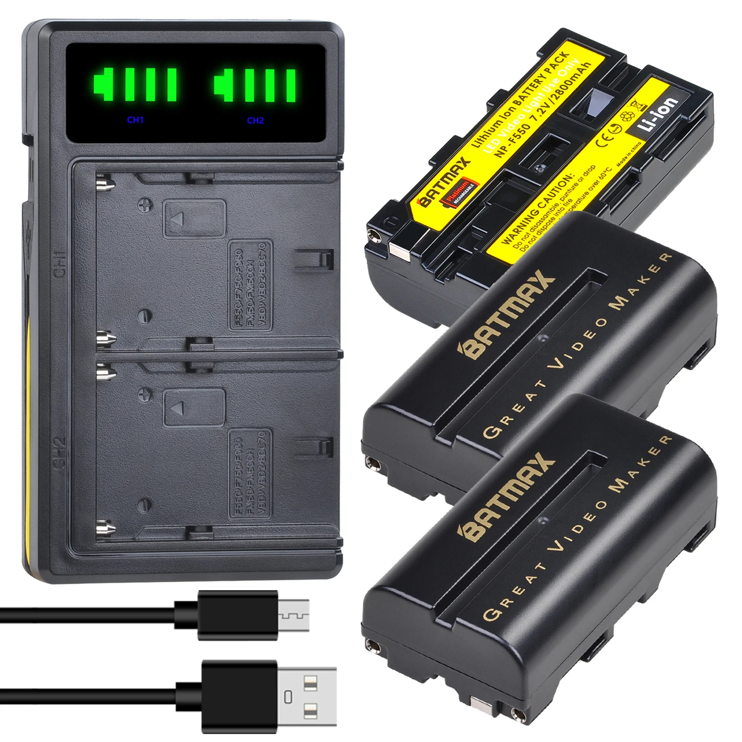 Batmax NP-F550 NP F550 F570 литий-ионный аккумулятор + светодиодный USB двойное зарядное устройство для Yongnuo GODOX Viltrox светодиодный светильник YN300Air II YN300 III YN600 Air L132T L116T