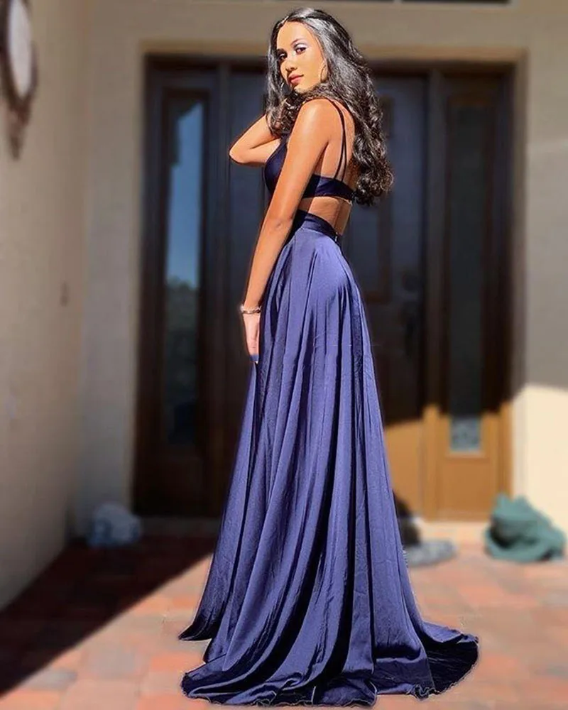 Женское платье на тонких бретельках, синее простое платье для выпус...