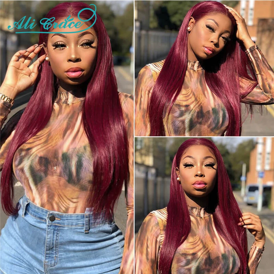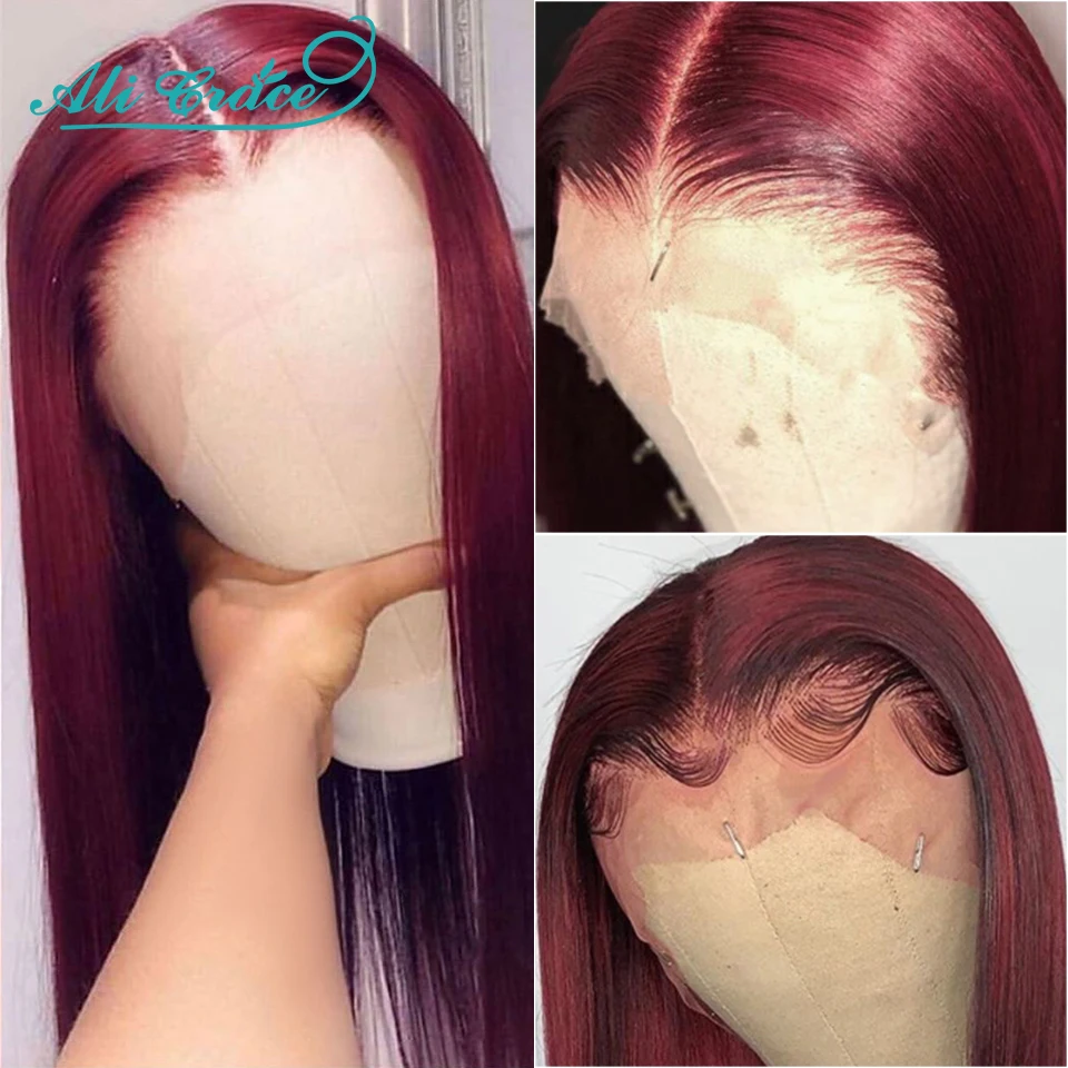 Ali Grace 99J парик фронта шнурка предварительно выщипанный бразильский прямой парик закрытие шнурка 4x4 человеческие волосы парики с детскими волосами 99J парик