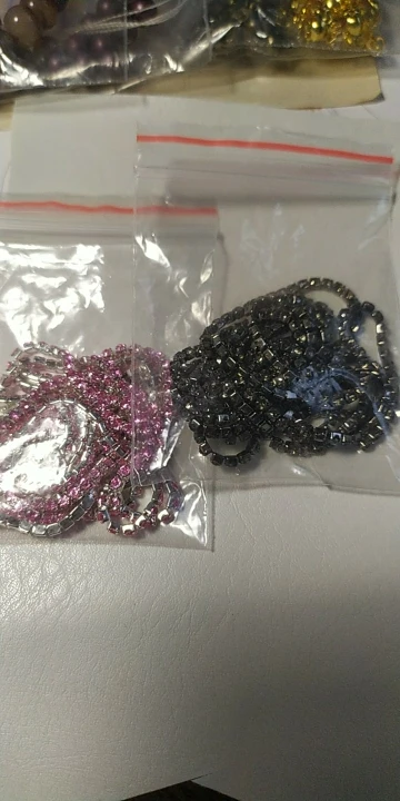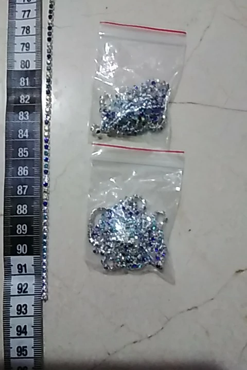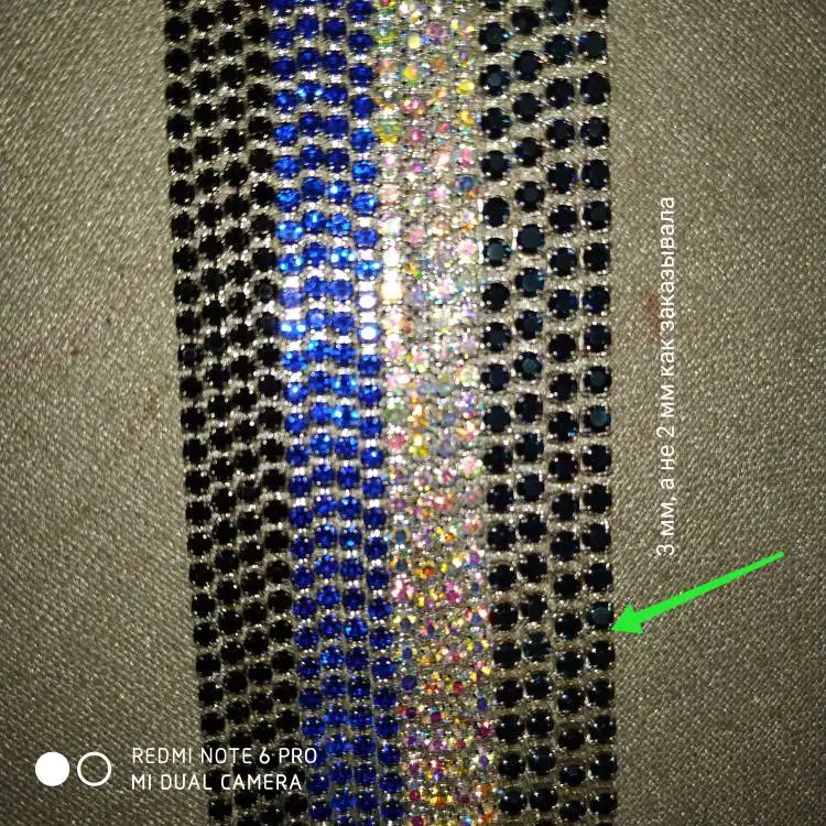 Заказывала стразовые ленты трёх цветов : красную, зелёную и голубую. 92 см в каждой. Красивые, блестят, аккуратно упакованы (каждая в свой зип-пакетик). Вот только у зеленой ленты отсутствует два камешка. Но это не критично. Кроме лент в один заказ продавец положил стразы, за что ему огромное спасибо!) Забрала сразу весь заказ!