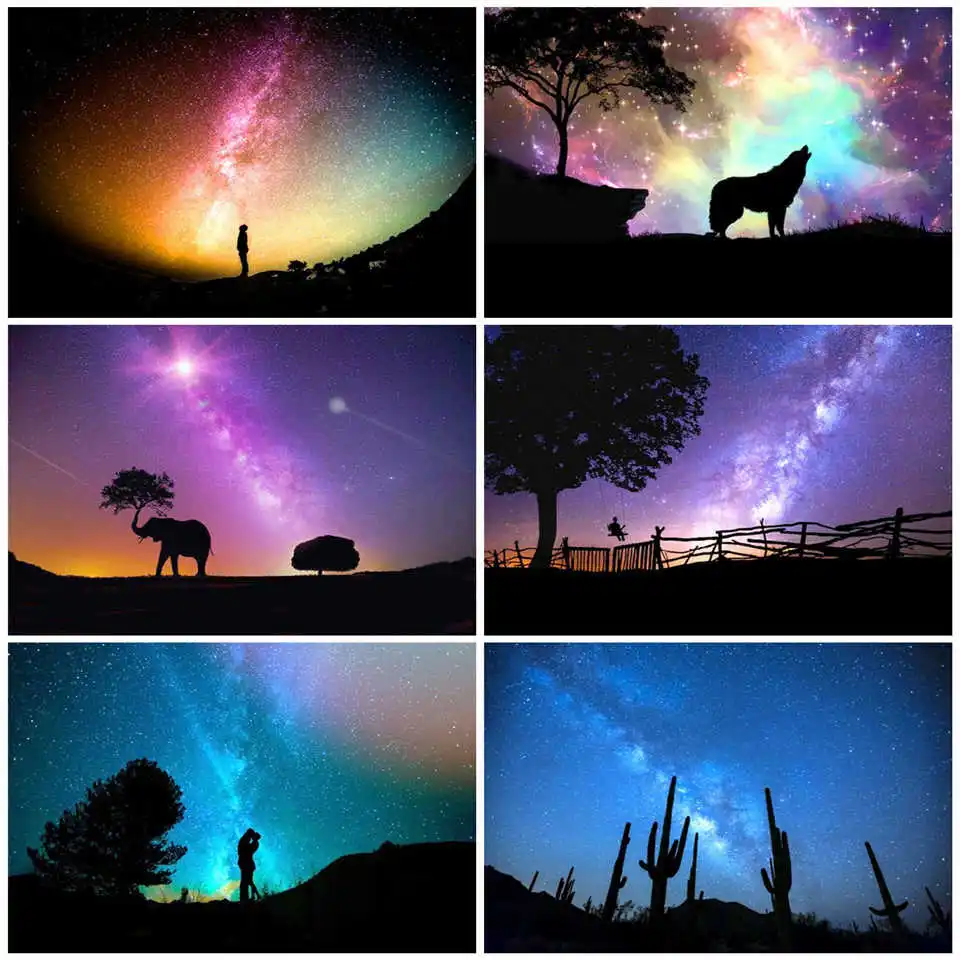 AZQSD DIY масляная краска ing Starry Sky Kit Акриловая Краска на холсте Современная Настенная художественная краска ing по номерам пейзаж домашний декор 50х40см