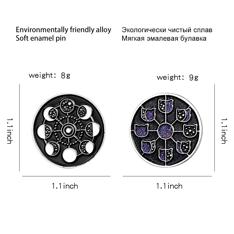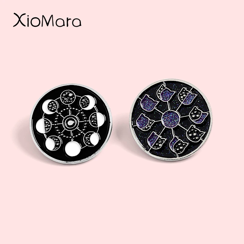 Лунная фаза эмалированные булавки Черная Кошка Луна звезды ведьма колдовство Волшебная Астрология животное ювелирные значки Броши Булавки на лацкан для детей