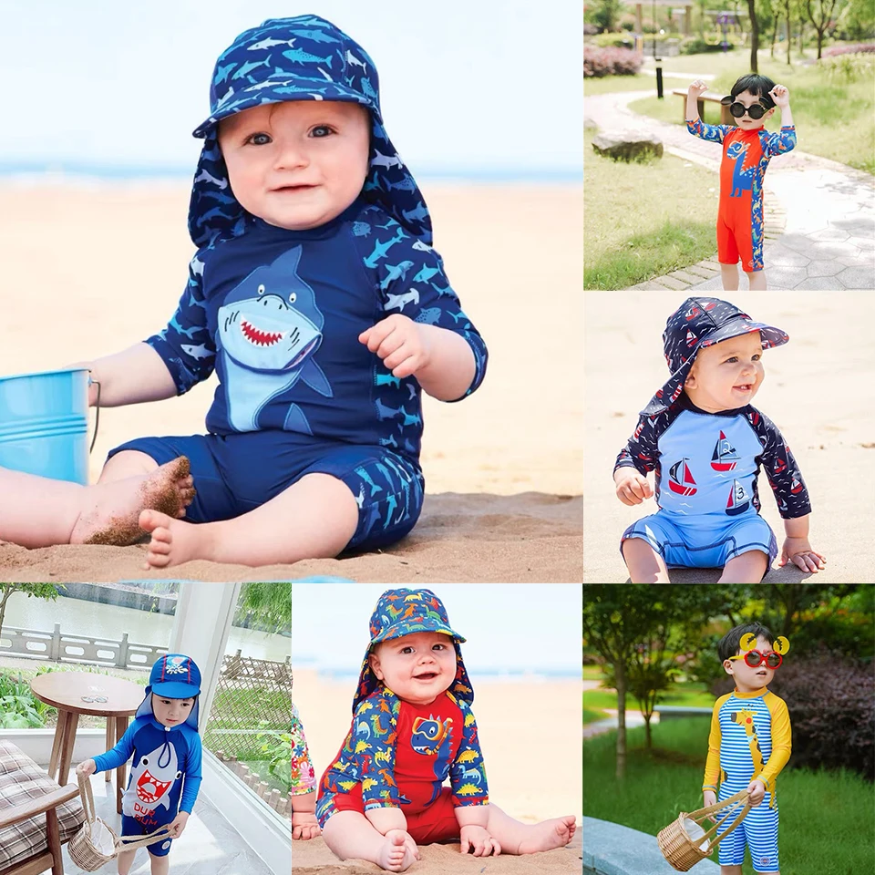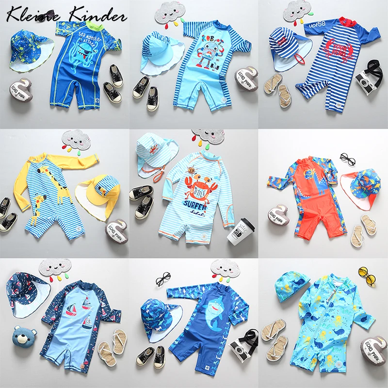 Купальник Детский UPF50 с длинным рукавом, детский слитный купальный костюм для мальчиков, пляжная одежда для маленьких мальчиков с УФ-защитой
