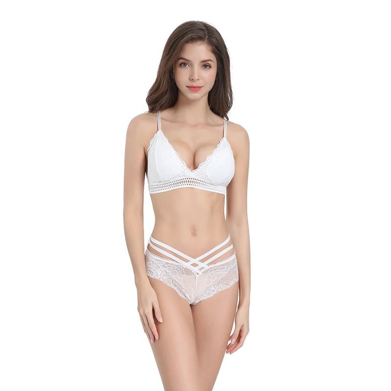 Комплект женского кружевного нижнего белья с треугольной чашкой и глубоким V-образным вырезом