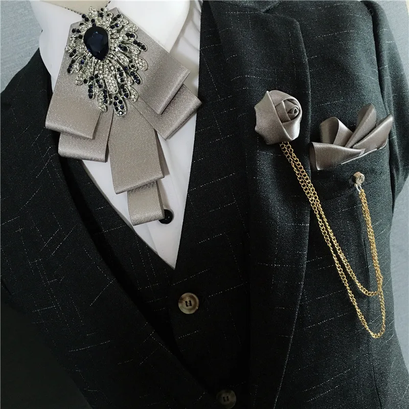 Корейский галстук бабочка высококачественный роскошный мужской свадебный банкетный костюм женский Карманный галстук-бабочка из трех предметов
