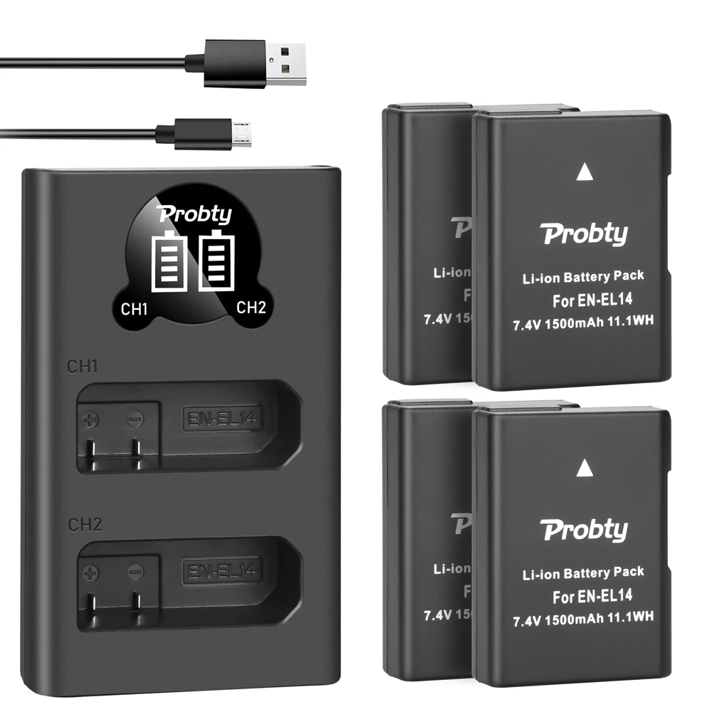 7,4 V 1500 мАч, EN-EL14 EN-EL14A ENEL14 Батарея для Nikon D3100 D3200 D3300 D3400 D3500 D5600 D5100 D5200 P7000 + светодиодный Батарея Зарядное устройство