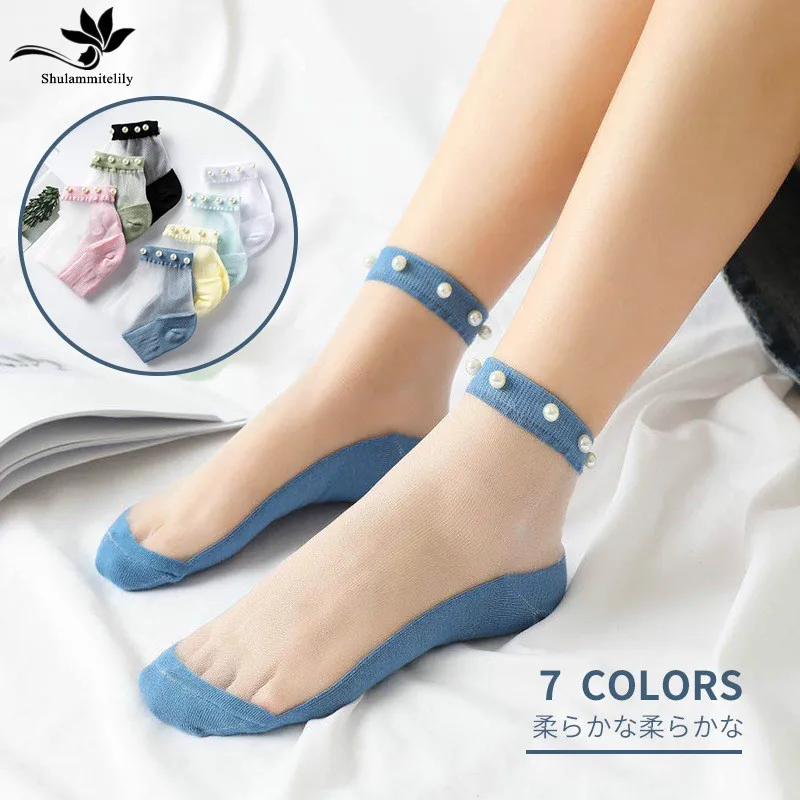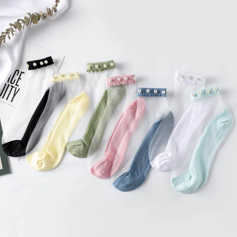 Носки женские хлопковые карамельных цветов с искусственным жемчугом, 10 пар