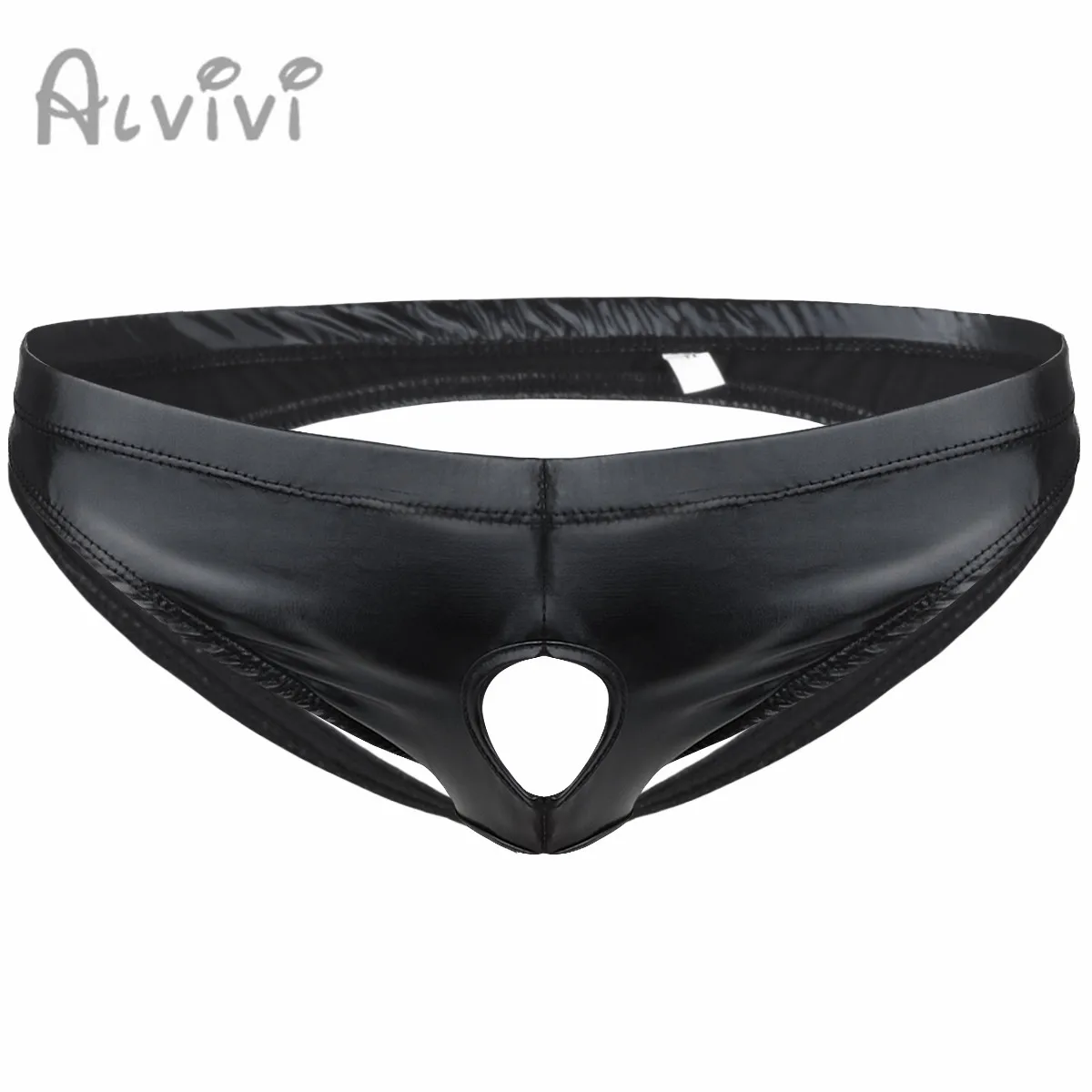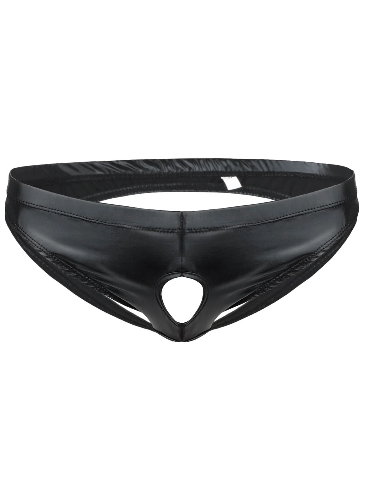 Трусы-бикини мужские, из лакированной кожи, с отверстиями спереди