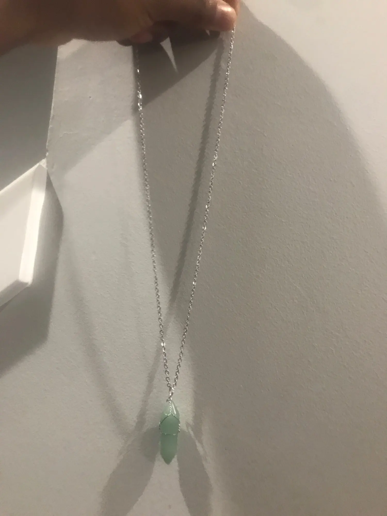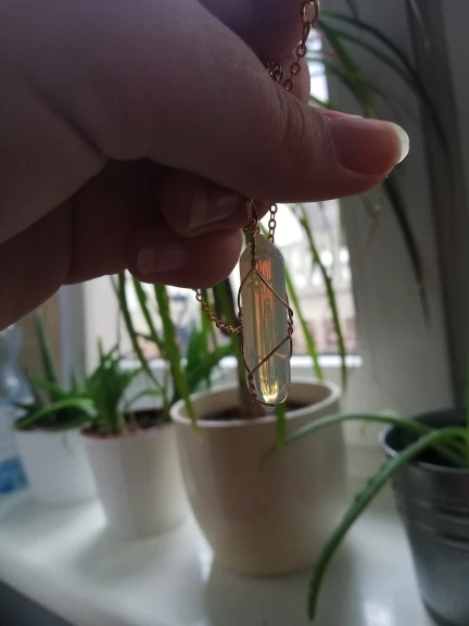 Выглядит точно так же, как на фото. Цепочка выглядит очень маленькой, но цена хорошая. Я рекомендую продавцу поменять цепь на более длинный. Кристалл выглядит хорошо и красиво. Настоятельно рекомендуется (для цепи, вы можете просто изменить его)