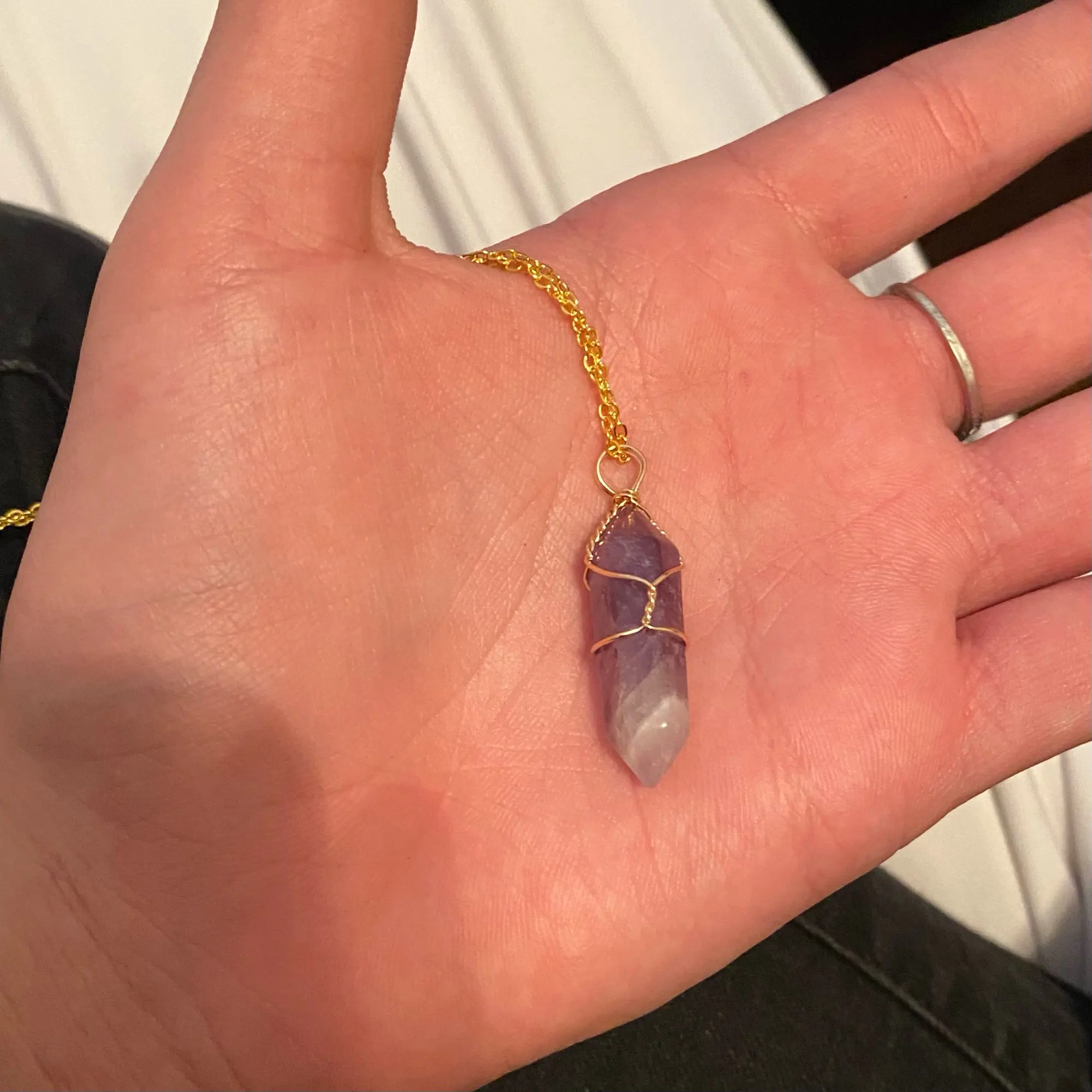 Страна: LV Metal Color: Amethyst Main Stone Color: Golden wire Length: 45cm Доставка: Standard Shipping 28.04.2021