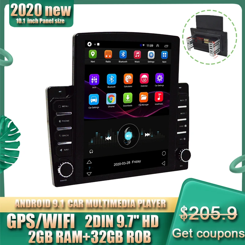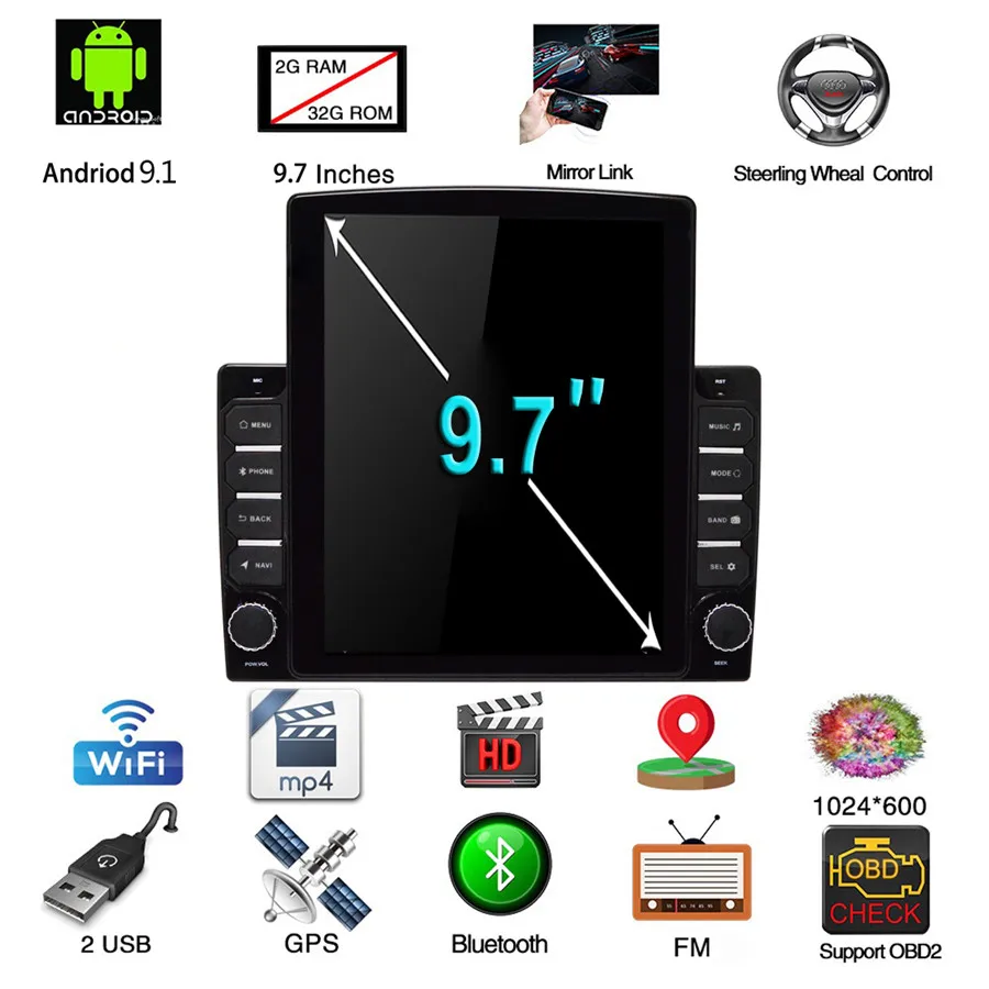 Автомобильный мультимедийный плеер, 10,1 "HD сенсорный экран 9,7", 2 Din Android стерео радио 2 + 32 Гб WIFI Аудио Mirrorlink MP5