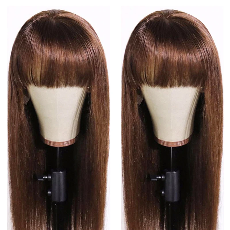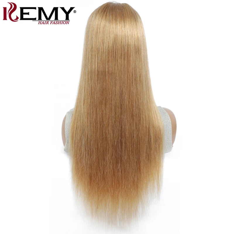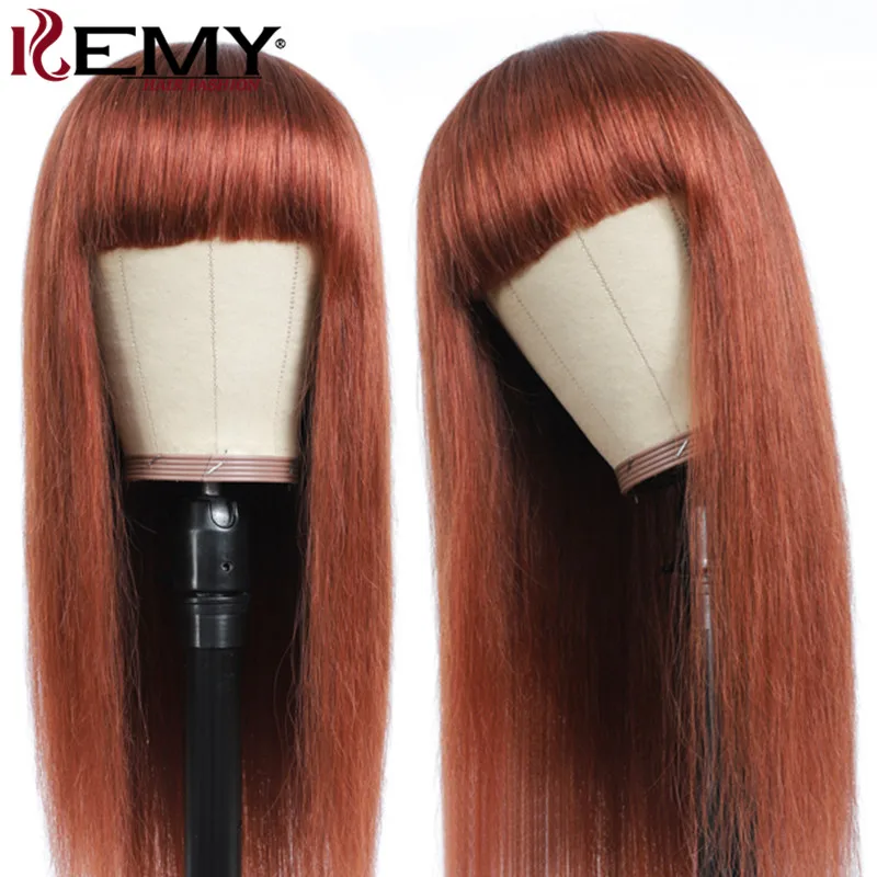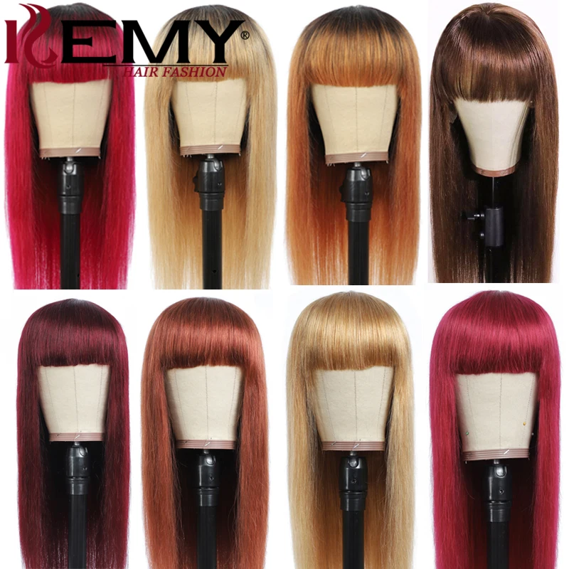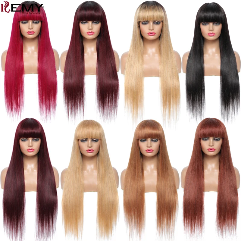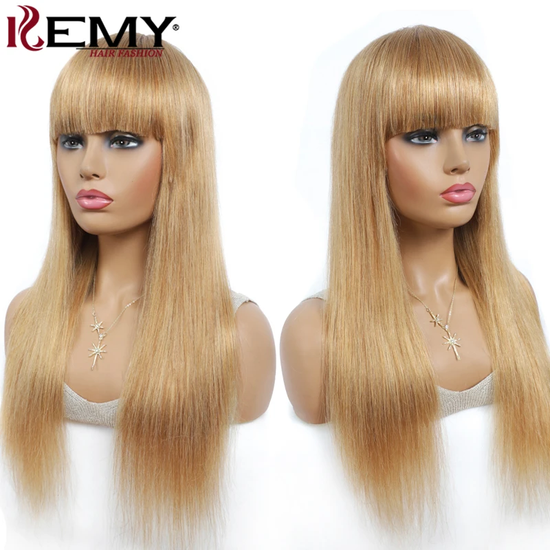 Прямой парик с челкой, бразильские человеческие волосы, парики для чернокожих женщин, медовый блонд, полностью машинный парик с челкой, плотность 150%, KEMY
