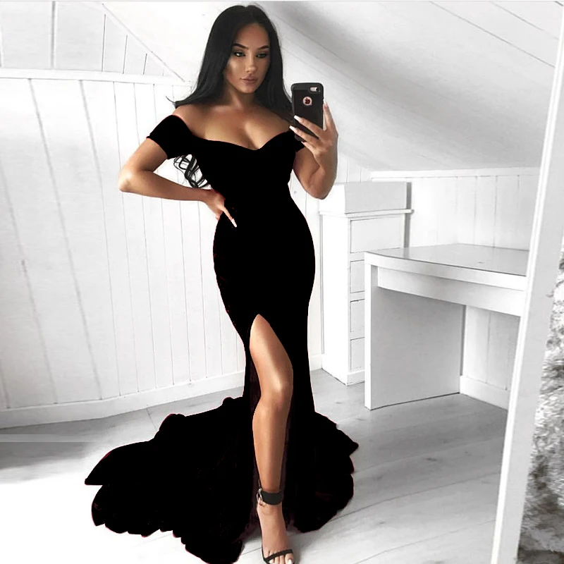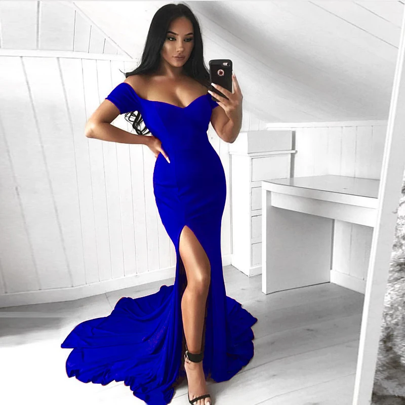 Женское вечернее платье со шлейфом Weilinsha, недорогое платье с открытыми плечами и разрезом по бокам, платье для выпускного вечера