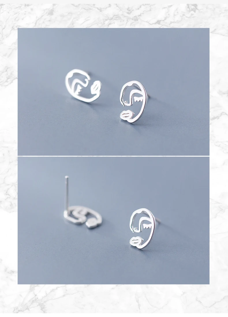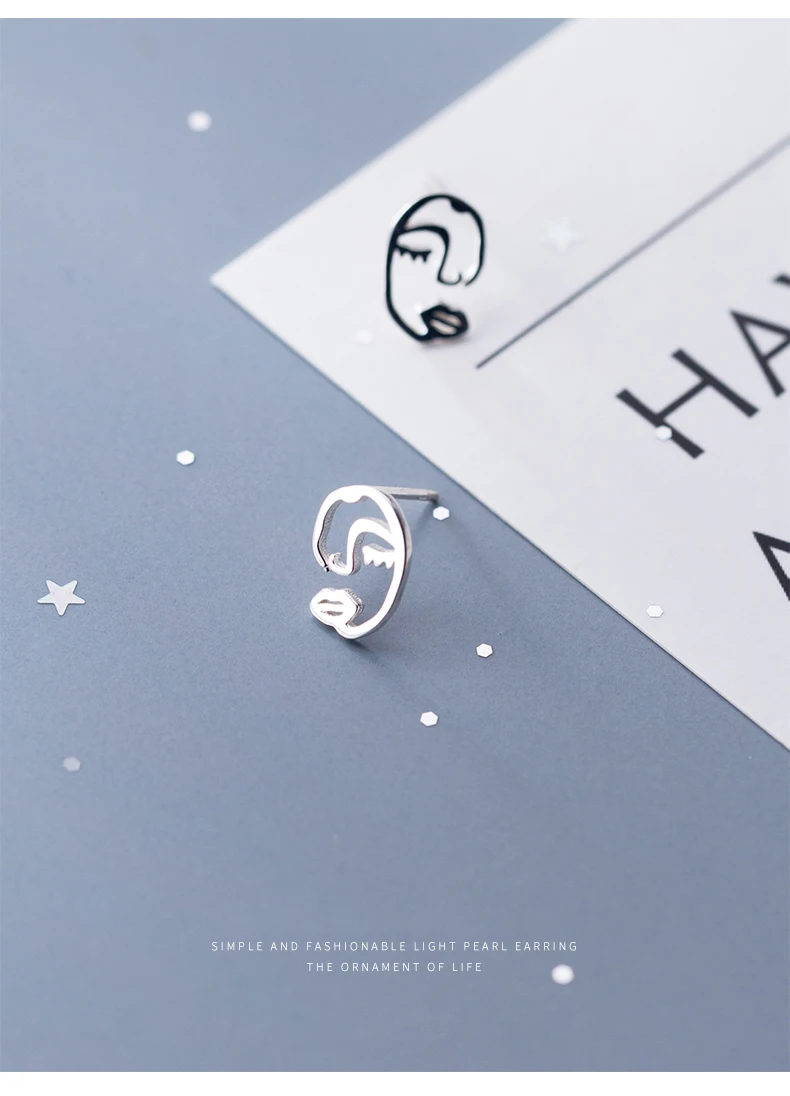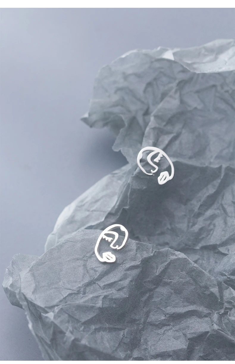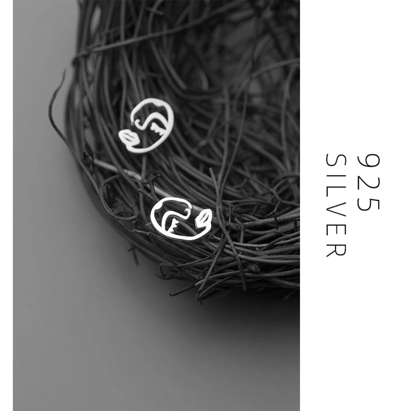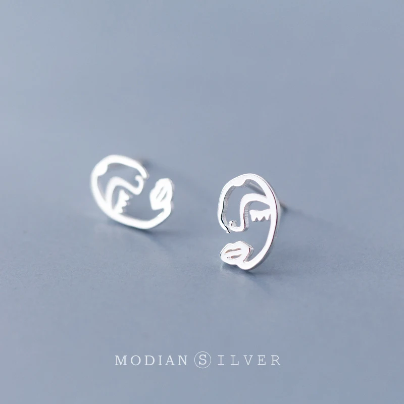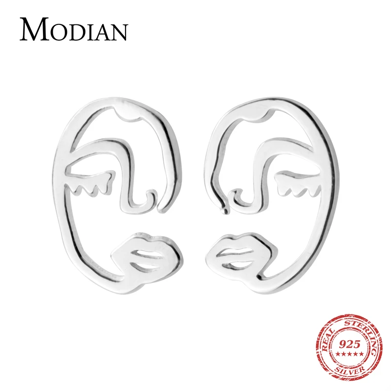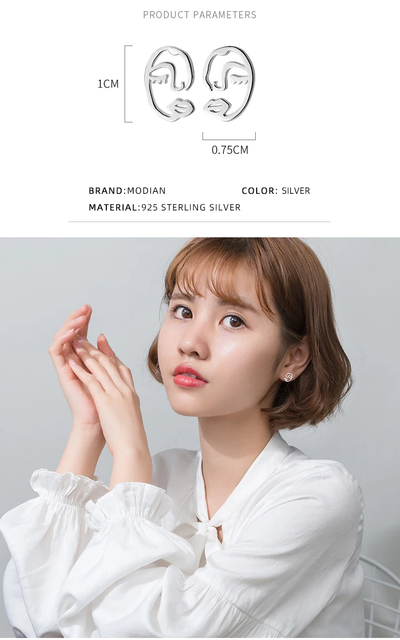 Женские серьги-гвоздики Modian с абстрактным дизайном, из стерлингового серебра 925 пробы с линией лица и губ, ювелирное изделие из стерлингового серебра