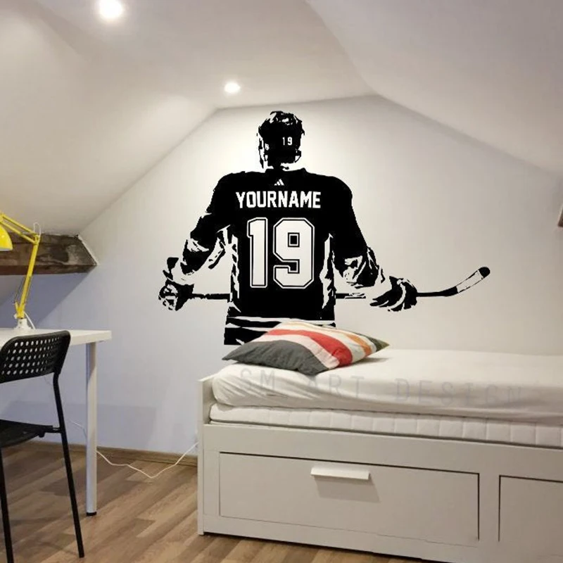 Винил Хоккей наклейка на заказ, хоккейная наклейка, декор на стену, цифры, A1-047, бумага ROWNOCEAN, современный лед, Выбор имени и Джерси