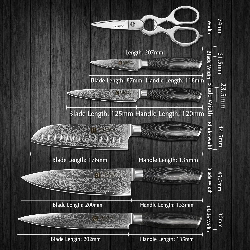 Набор ножей XINZUO, 7 шт., из дамасской стали, для шеф-повара, сантоку