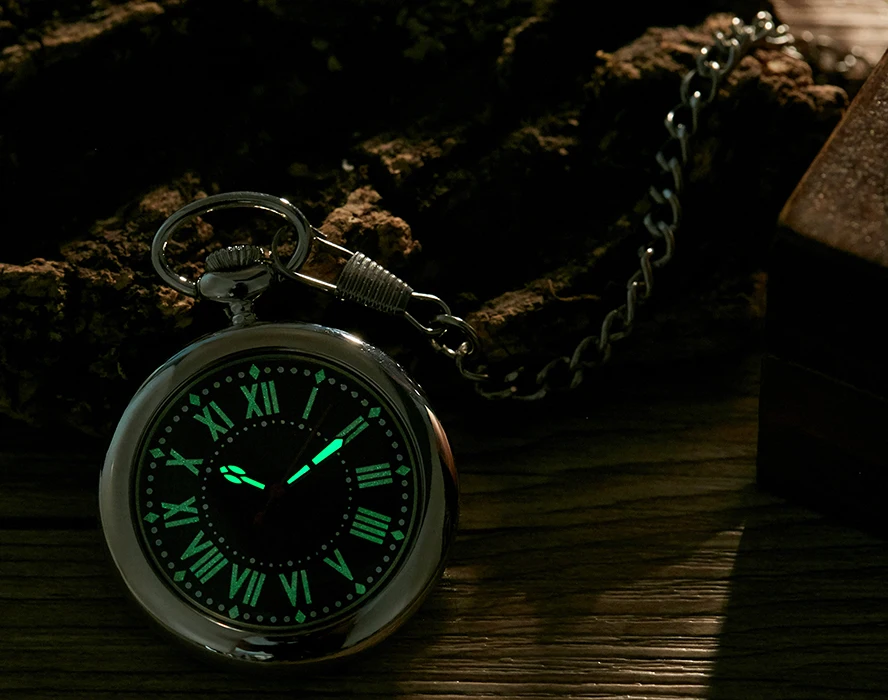 Светящиеся кварцевые карманные часы для мужчин и женщин, черного серебристого и золотистого цвета подвеска на цепочке, светится в темноте, светильник том