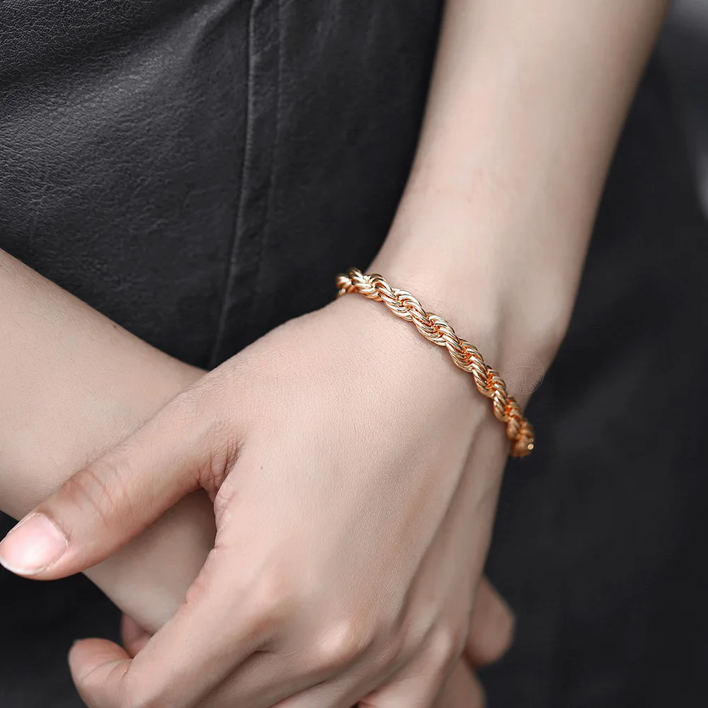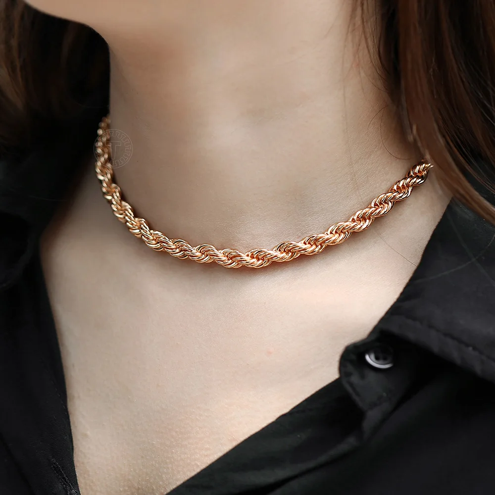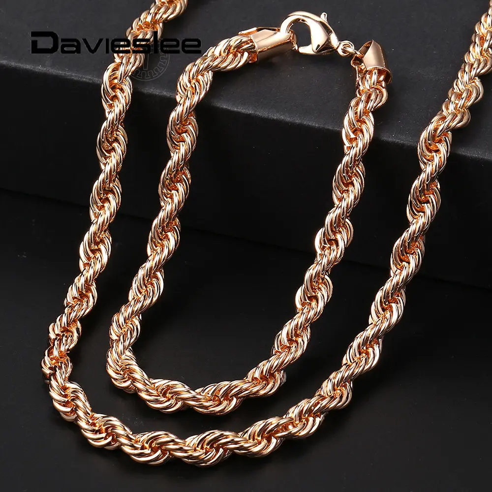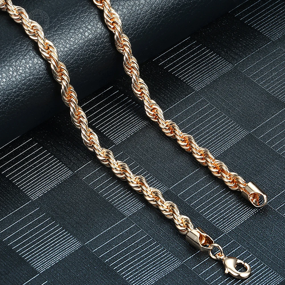 Комплект ювелирных изделий для женщин и мужчин, ожерелье и браслет из витой веревки под розовое золото 585 пробы, цепочка для вечеринок, свадебные украшения, LCS19, 56 мм
