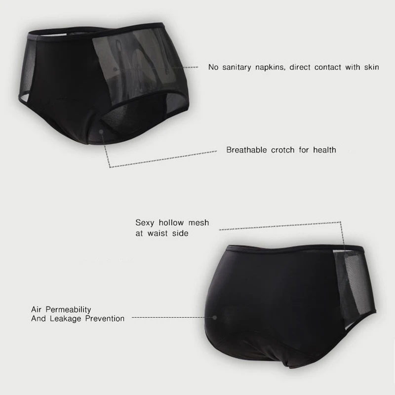 Четыре слоя герметичного черного менструального женского нижнего белья