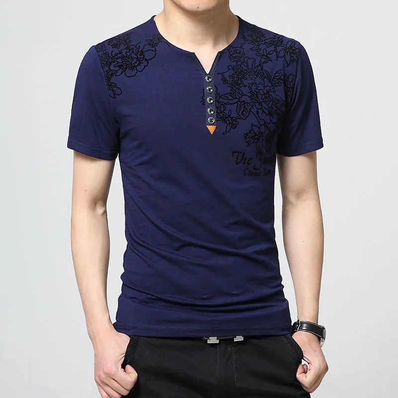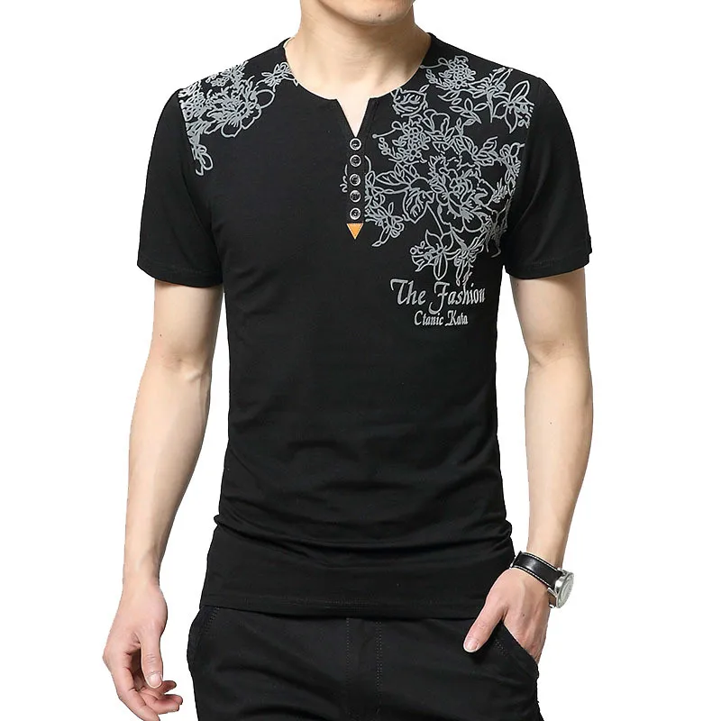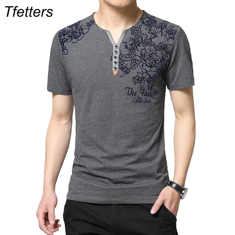 Мужская летняя футболка TFETTERS, с воротником Генри, с коротким рукавом, с буквенным принтом