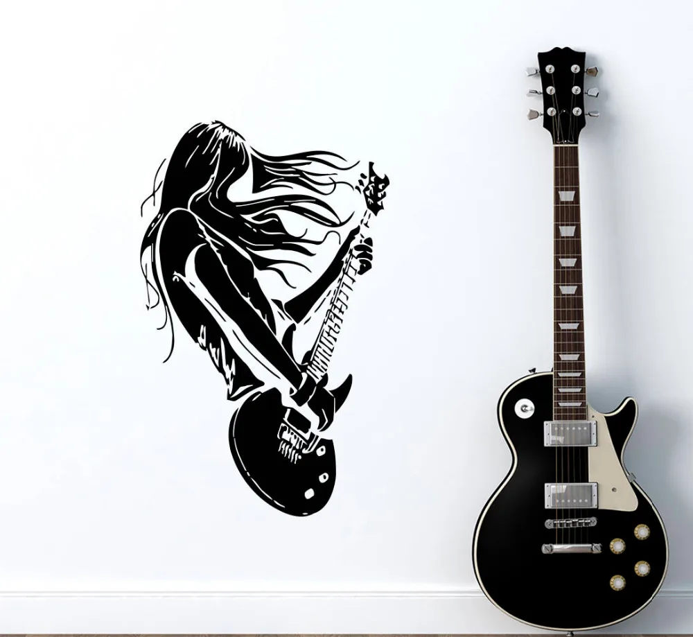 Рок-персонаж, гитара, музыка, энтузиасты, наклейка на стену, украшение для гостиной, виниловые наклейки на стену, наклейка для домашнего декора в помещении, 890