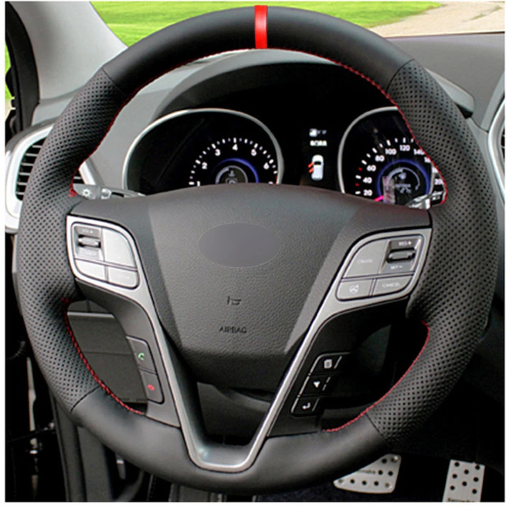 Чехол на руль для HYUNDAI Santa Fe 2013 Grand Ix45, аксессуары из искусственной кожи, прошитый вручную, нескользящий