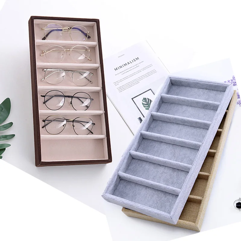 Модные чехлы для очков оптом, 6 ячеек, коробка для демонстрации солнцезащитных очков, витрина для очков, подставка-органайзер для ювелирных изделий