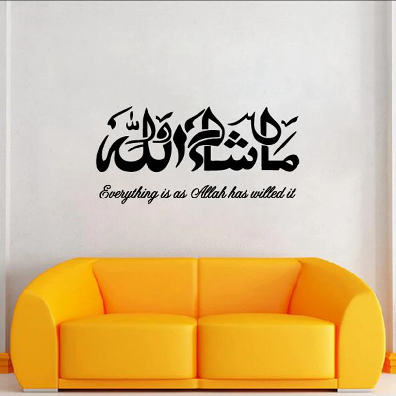 Маша Бог исламские наклейки на стену, арабский и английский каллиграфия Искусство мусульманские настенные наклейки декор