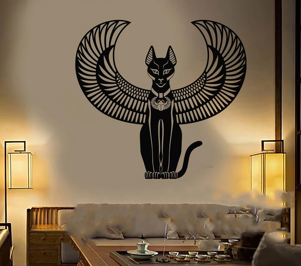 Bastet виниловые наклейки на стены, украшения для спальни, древний египетский кот, богиня египетской стены, настенные наклейки для гостиной