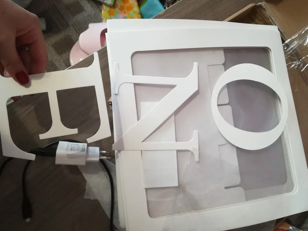 Мне понравились коробки, они сделаны из картона и центральной пластиковой панели, буквы идут отдельно, чтобы приклеить двухстороннюю ленту также включены. The mounted Effect is Very Nice, cn Balloons inside and batteries Lights Look Very Nice. Они приходят в сложенном виде и упакованы протекторами в углах