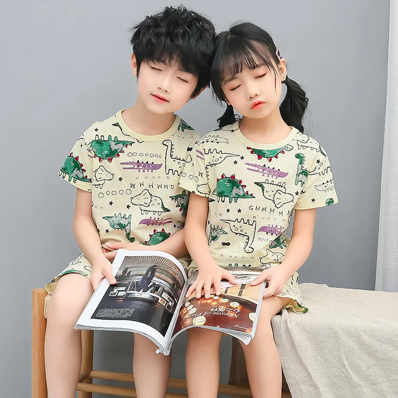 Пижама для мальчиков и девочек, новинка, летняя детская одежда с ко...
