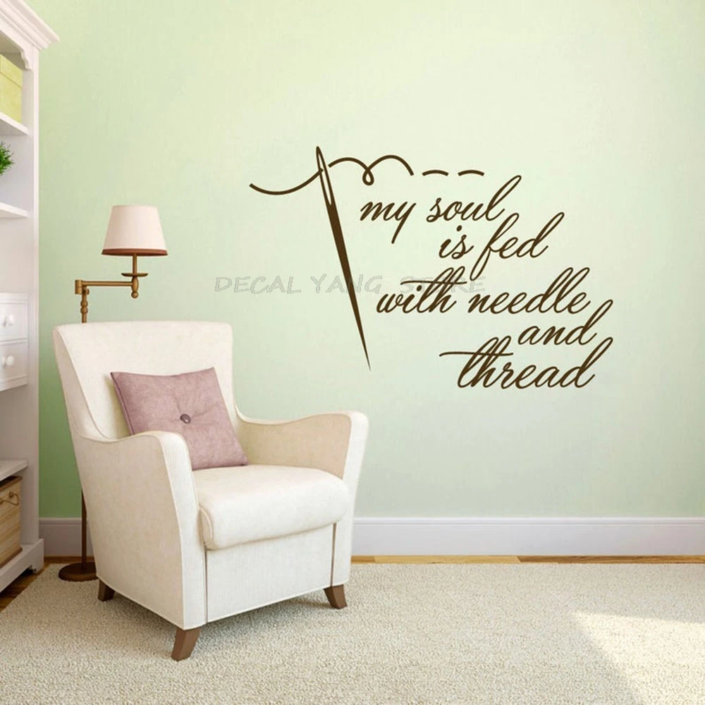 My Soul кормится иглой и нитью Настенная Наклейка для шитья крафтинга стежка хобби Цитата Съемная настенная художественная виниловая настенная наклейка 1537