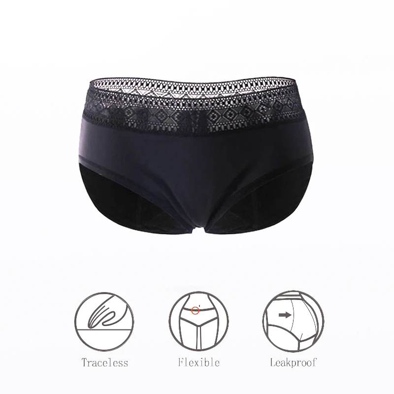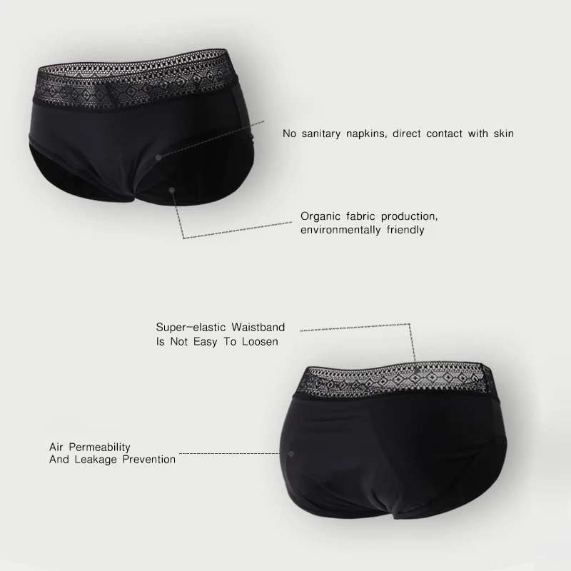 Четыре слоя герметичного черного менструального женского нижнего белья