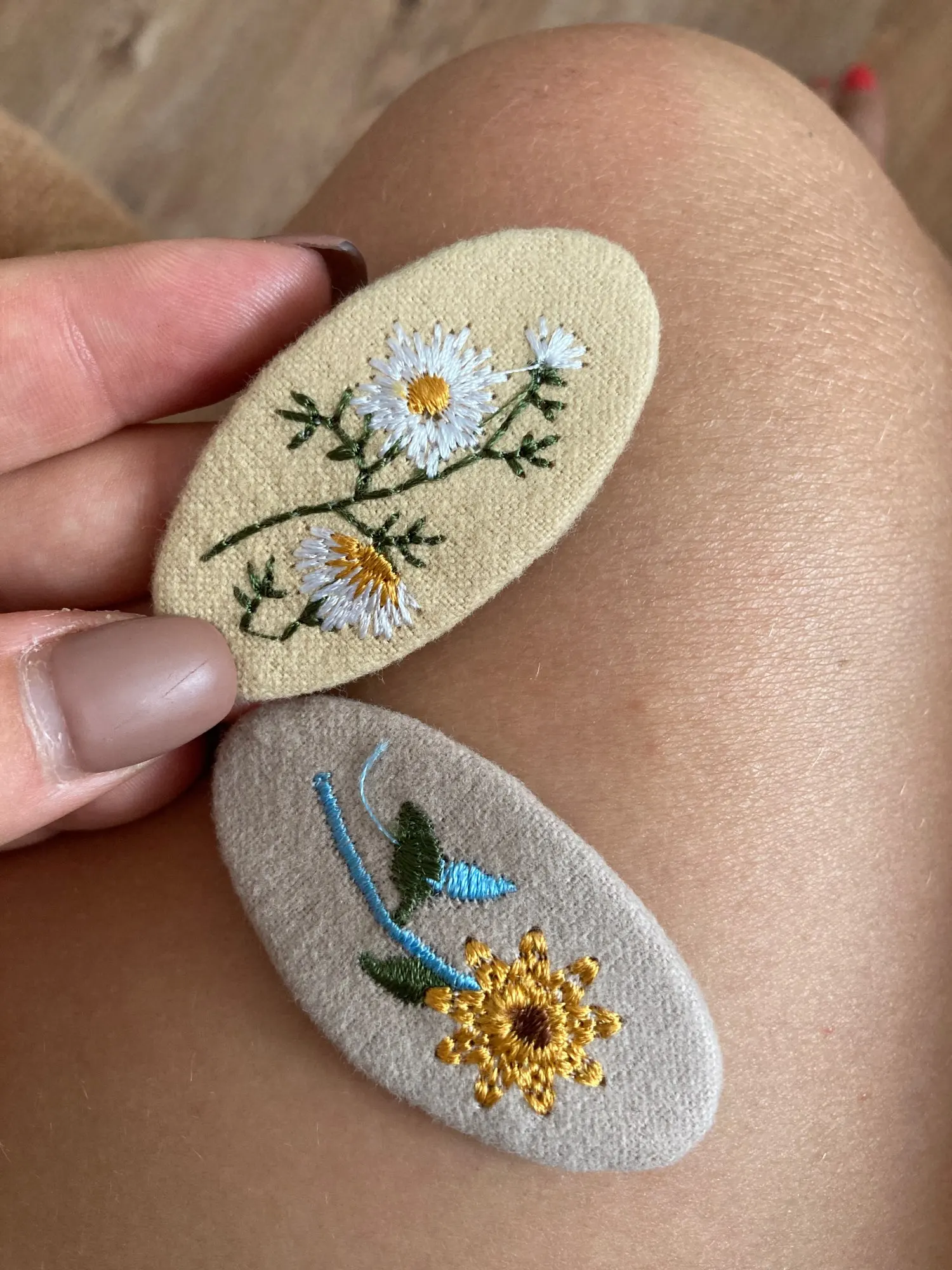 Очень хорошая и качественная упаковка клипов, они такие же, как на фото, бежевый с маргаритами такой же, но другой вместо розового, бежевый Вино с горчицей Маргариты в синем, также очень красивый, я бы купил снова, идеально подходит для осени.