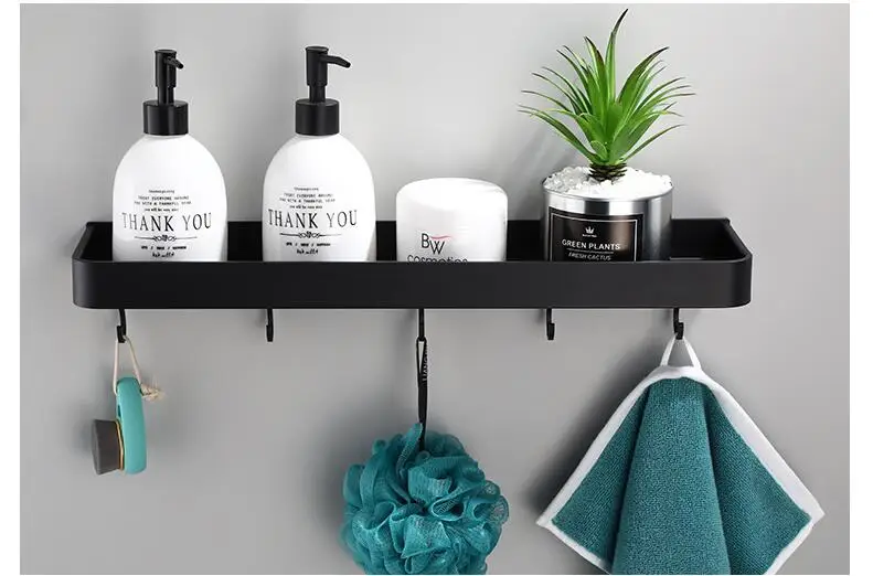 Полка для ванной, душевая полка с крючком, держатель для шампуня, угловая полка для ванной, черный алюминиевый держатель для хранения на кухне