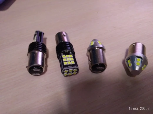 покупались для задних фонарей prado 2006 стопы и поворотники светят ярче обычных филипсов (на фото led в левой фаре), даже в светлых день легко заметить. НО после установки лампы в поворотник, скорость мигания увеличивается в 2 раза, т.е. нужно менять реле. поменяю реле, дополню отзыв. до Киева 3 недели Новой Почтой не ошибитесь с цоколем для своего авто!!!!