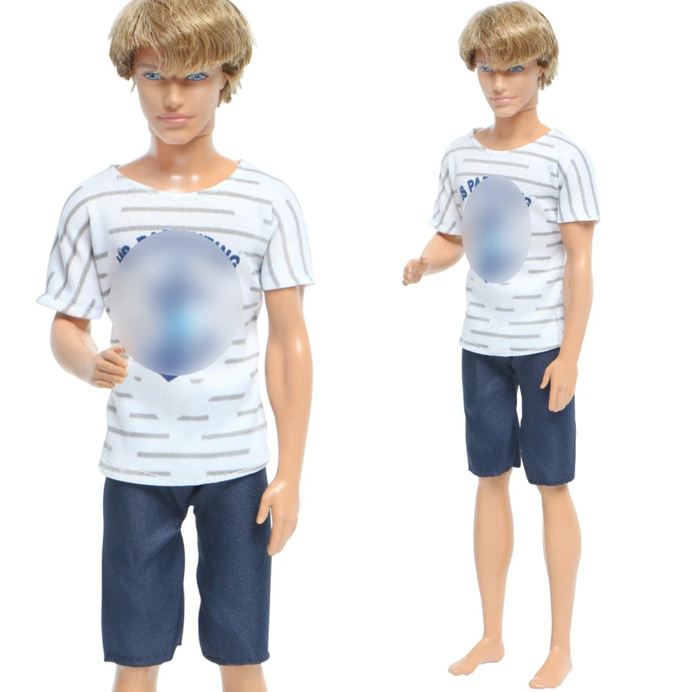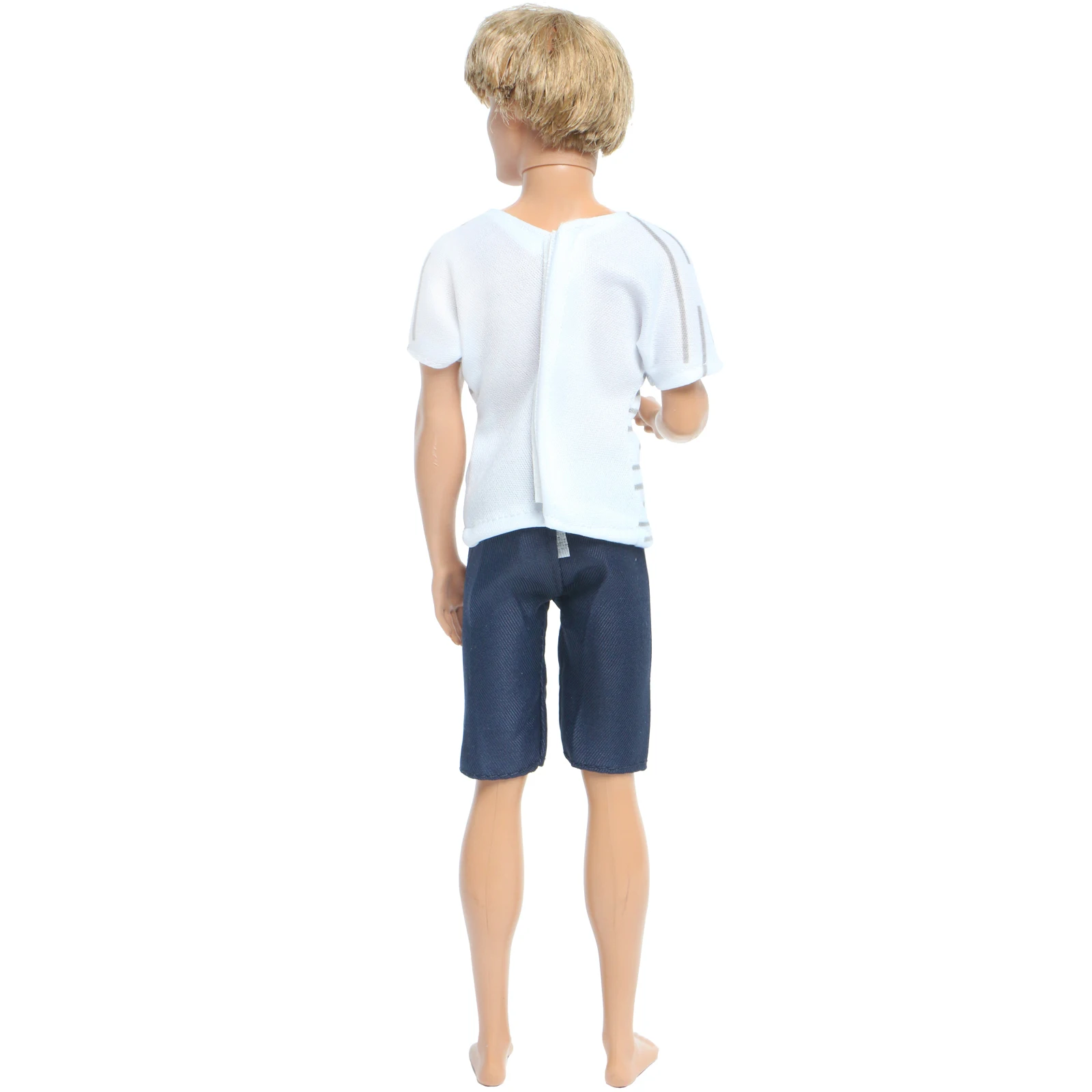 1 комплект, искусственная Мужская одежда, белая футболка, топы, темно-синие брюки, одежда, аксессуары для куклы Барби, для куклы Кена, детская игрушка