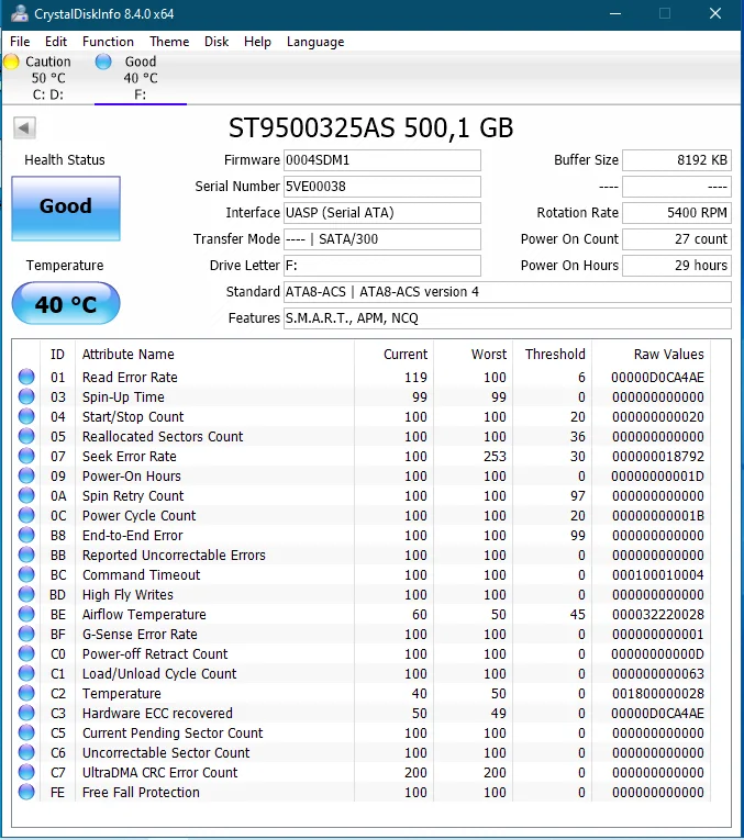 Только что получил мой HD 500 Гб. До сих пор хорошо работает. Быстрая доставка. Купил 22 декабря прибыл домой в 06/01 году. Не облагается налогом. Операция, проводимая медленно. Скопируйте 41 Гб в течение примерно 15 минут. В среднем 39 МБ/с./с. Однако для моего типа использования, фильмов, документов и резервного копирования хороший размер.