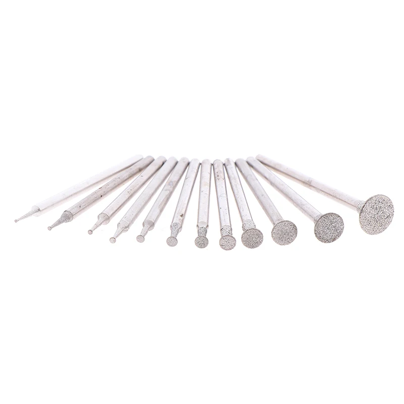 Алмазный шлифовальный станок 12 шт.лот с хвостовиком 2,3, игловидный Бур для гравировки, резьбы полировки стекла, нефрита, камня, набор роторных инструментов