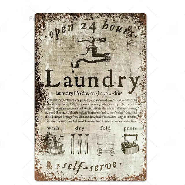 Декор для прачечной, винтажный жестяной знак, металлический винтажн...