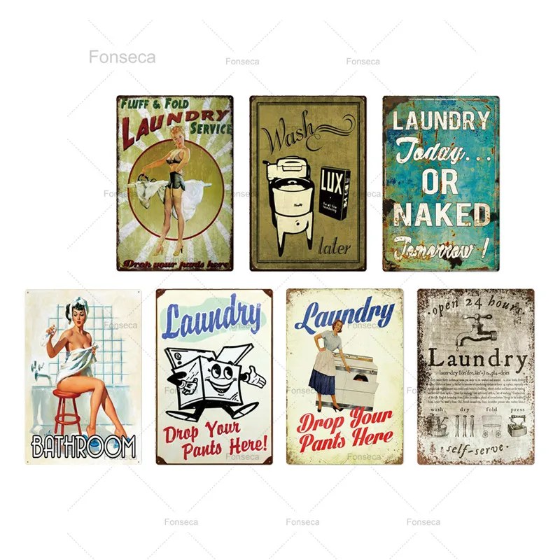 Табличка с надписью прачечной винтажный Оловянная табличка металлический винтажный Ретро металлический знак Настенный декор для прачечной