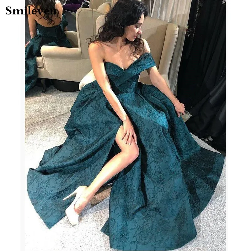 Женское вечернее платье Smileven, зеленое платье с высоким разрезом...